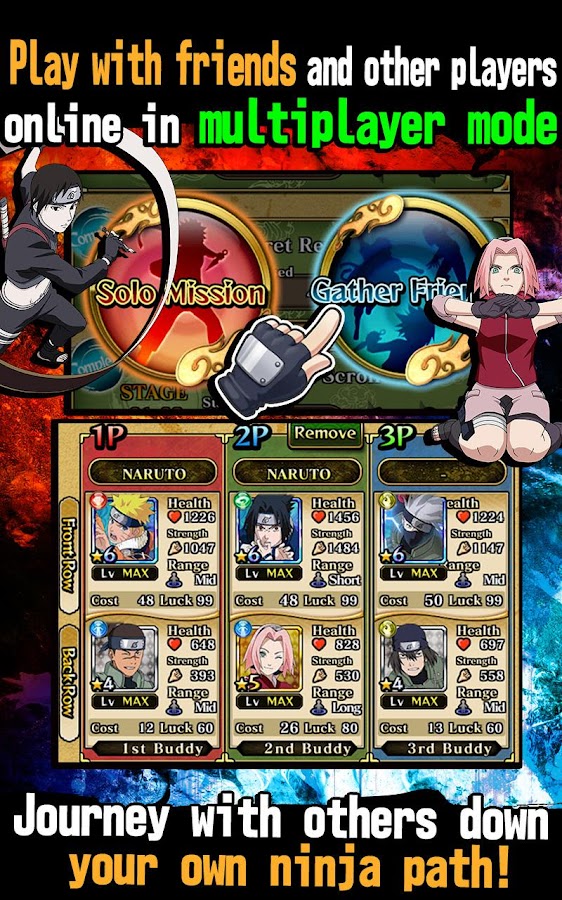 Fight hordes of enemies and complete missions using the all-new Shinobi Formation Battle system: a strategic RPG fighting system that unleashes exhilarating combination attacks with your allies. Master team field skills, discover new ninjutsu and become the next Hokage in the first-ever Ultimate Ninja mobile game!